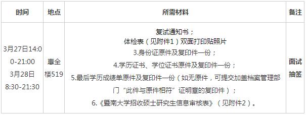 注:1.請登錄學(xué)校研招辦的網(wǎng)站:http://enroll.jnu.edu.cn/enroll-md/index.do下載復(fù)試通知書。(報(bào)名號作為用戶名,身份證號作為密碼,點(diǎn)擊打印,每完成一個(gè)項(xiàng)目蓋章都需確認(rèn),4月1日前交回學(xué)院。)