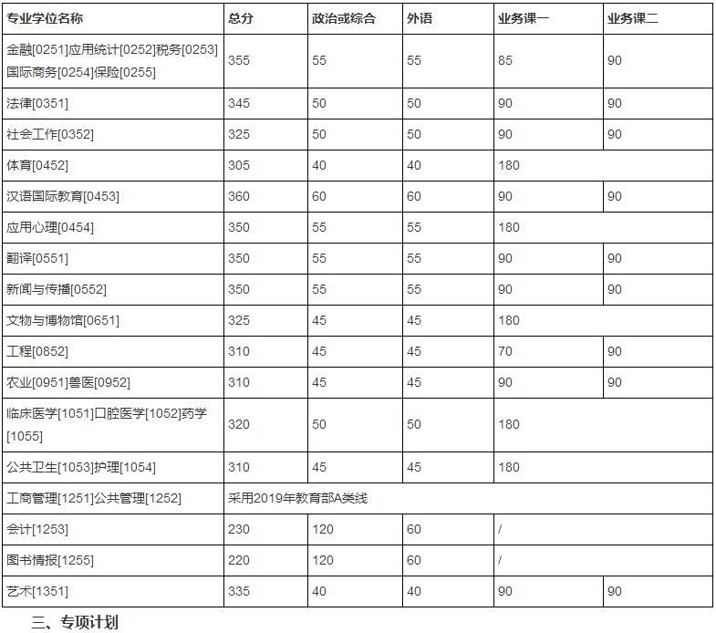 3.關(guān)于少數(shù)民族高層次骨干人才專項(xiàng)計(jì)劃,對(duì)于達(dá)到復(fù)試基本成績(jī)要求的考生,按照教育部下達(dá)給我校的分省招生計(jì)劃擇優(yōu)確定復(fù)試名單(見(jiàn)附件),沒(méi)有合格生源省份的招生計(jì)劃將按照初試總分由高到低的原則調(diào)劑給生源充足的省份。聯(lián)考考生成績(jī)按照初試成績(jī)滿分500分折算后統(tǒng)籌考慮。定向服務(wù)地區(qū)招生計(jì)劃詳見(jiàn)教育部相關(guān)網(wǎng)站。