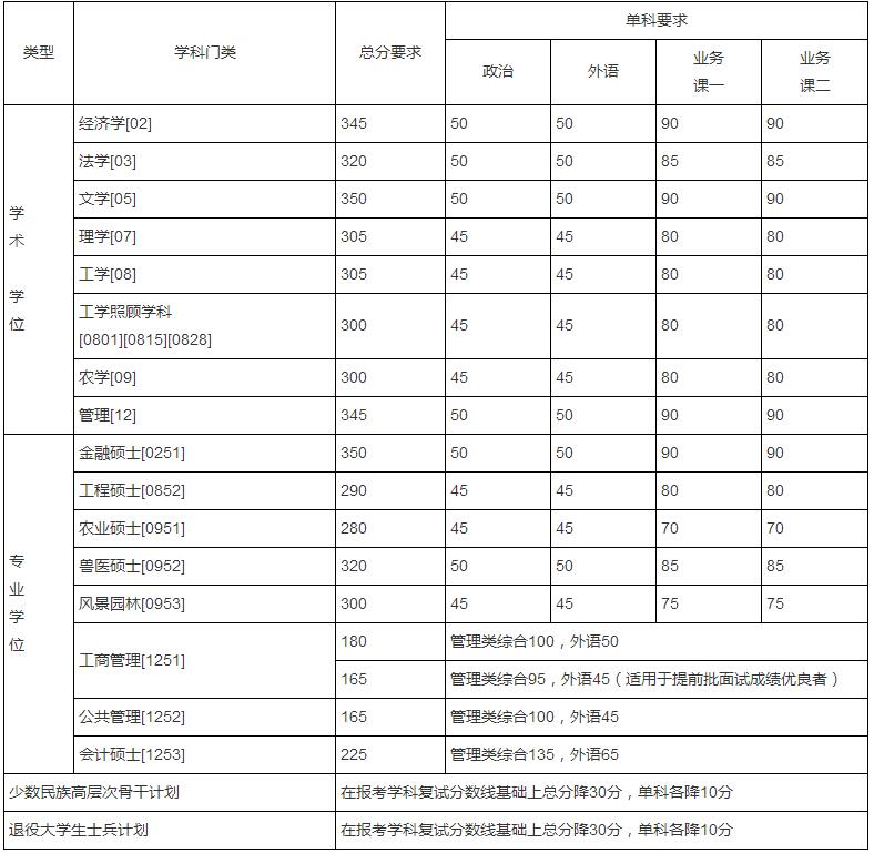 根據(jù)教育部《2019年全國碩士研究生招生工作管理規(guī)定》文件精神,結(jié)合我校實(shí)際情況,經(jīng)學(xué)校研究生招生領(lǐng)導(dǎo)小組研究決定,2019年碩士研究生入學(xué)考試復(fù)試基本線如下: