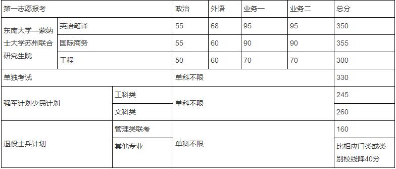 2. 統(tǒng)考考生(不含報(bào)考蘇州聯(lián)合研究生院考生和管理類聯(lián)考考生)總分超過專業(yè)分?jǐn)?shù)線20分以上,單科(限一門)可降2分。