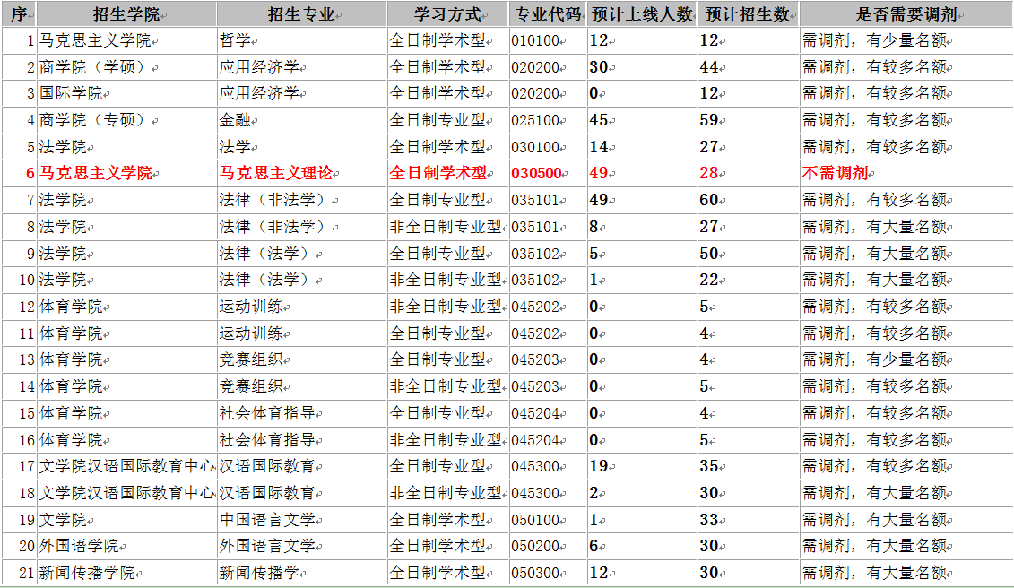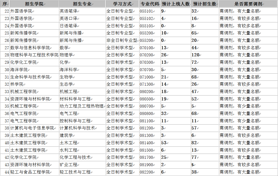 現(xiàn)我院根據(jù)2018年國(guó)家線預(yù)測(cè)我校調(diào)劑差額信息,以供考生參考。最終專(zhuān)業(yè)缺額調(diào)劑信息以“2019年全國(guó)碩士研究生招生考試考生進(jìn)入復(fù)試的初試成績(jī)基本要求”(以下簡(jiǎn)稱(chēng)國(guó)家復(fù)試分?jǐn)?shù)線)公布后,考生登錄研招網(wǎng)調(diào)劑系統(tǒng)能申請(qǐng)調(diào)劑的實(shí)際專(zhuān)業(yè)為準(zhǔn)。