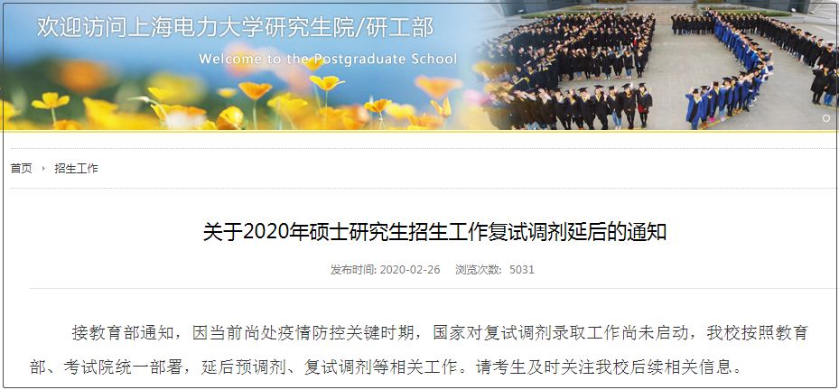 上海電力大學則直接重新發(fā)布了一篇調(diào)劑延后的公告,如下: