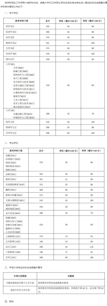 2022年湖南大學(xué)研究生復(fù)試分?jǐn)?shù)線已公布院校動(dòng)態(tài)