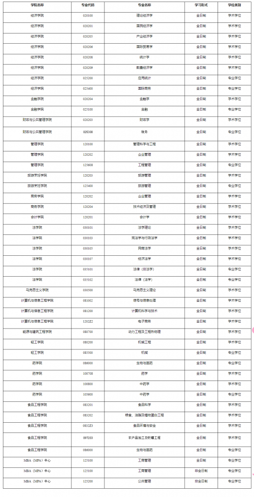 由于招生過(guò)程存在一定的動(dòng)態(tài)變化,我校接收調(diào)劑的專(zhuān)業(yè)也將隨之持續(xù)更新。正式接收調(diào)劑的學(xué)科專(zhuān)業(yè),請(qǐng)考生以中國(guó)研究生招生信息網(wǎng)調(diào)劑系統(tǒng)中開(kāi)通的學(xué)科專(zhuān)業(yè)為準(zhǔn),下表為我校擬接收調(diào)劑的學(xué)科專(zhuān)業(yè)。