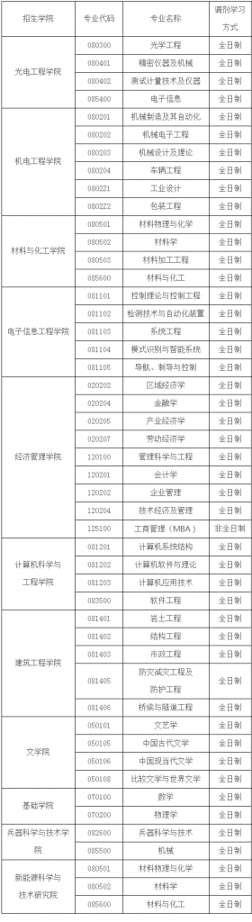 備注:所有接收調劑專業(yè)以研招網調劑平臺開放后公布為準。