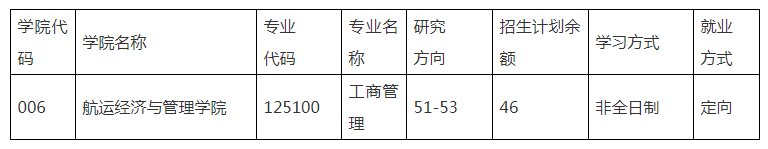 接收調(diào)劑專業(yè)為非全日制工商管理碩士(MBA),招生計(jì)劃余額等信息詳見下表: