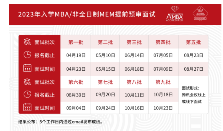 (3)預(yù)審面試成績我們將在預(yù)審面試后5個(gè)工作日內(nèi)以郵件方式發(fā)送給考生。