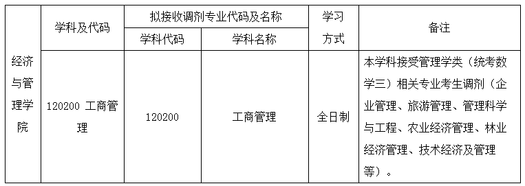 經(jīng)濟(jì)與管理學(xué)院2022年碩士研究生招生工商管理學(xué)科接收調(diào)劑考生,現(xiàn)根據(jù)學(xué)校調(diào)劑公告文件精神,在“經(jīng)濟(jì)與管理學(xué)院2022年碩士研究生復(fù)試錄取工作方案”的基礎(chǔ)上,就調(diào)劑相關(guān)事項公告如下: