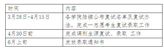 2. 按照學校有關研究生招生復試錄取的要求,制定本學院《2022年碩士研究生復試錄取工作實施細則》,內(nèi)容包括:復試內(nèi)容、形式、程序、時間、地點、要求。