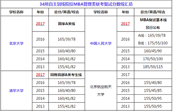 34所自主劃線院校MBA管理類聯(lián)考復(fù)試分?jǐn)?shù)線匯總考研新聞