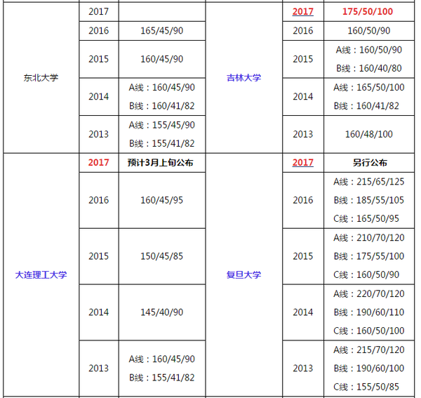 現(xiàn)在一些院校的2017年研究生入學(xué)考試復(fù)試分?jǐn)?shù)線也在陸續(xù)公布中,現(xiàn)將34所自主劃線院校管理類聯(lián)考2013年-2017年的復(fù)試分?jǐn)?shù)線匯總如下,供廣大考生在第一時(shí)間查詢?cè)盒?fù)試分?jǐn)?shù)并了解各院校面試及調(diào)劑等各項(xiàng)信息的發(fā)布情況。為方便考生進(jìn)入理想院校,64調(diào)劑網(wǎng)在第一時(shí)間為廣大考生提供調(diào)劑服務(wù)咨詢。